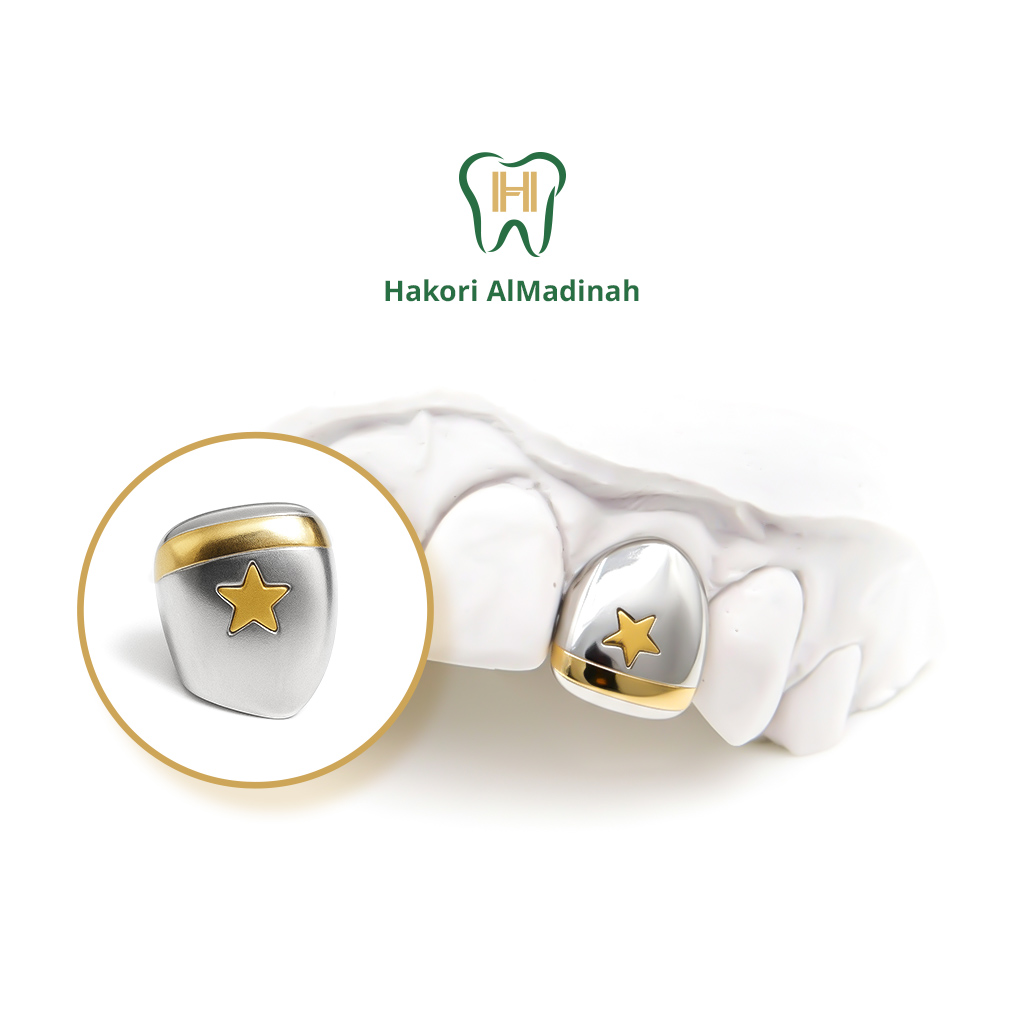 Diamond tooth with gold star and side line