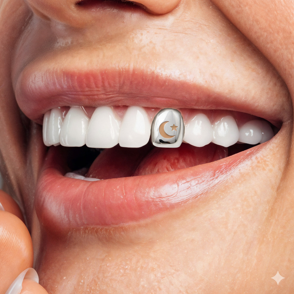 White gold tooth with star and crescent